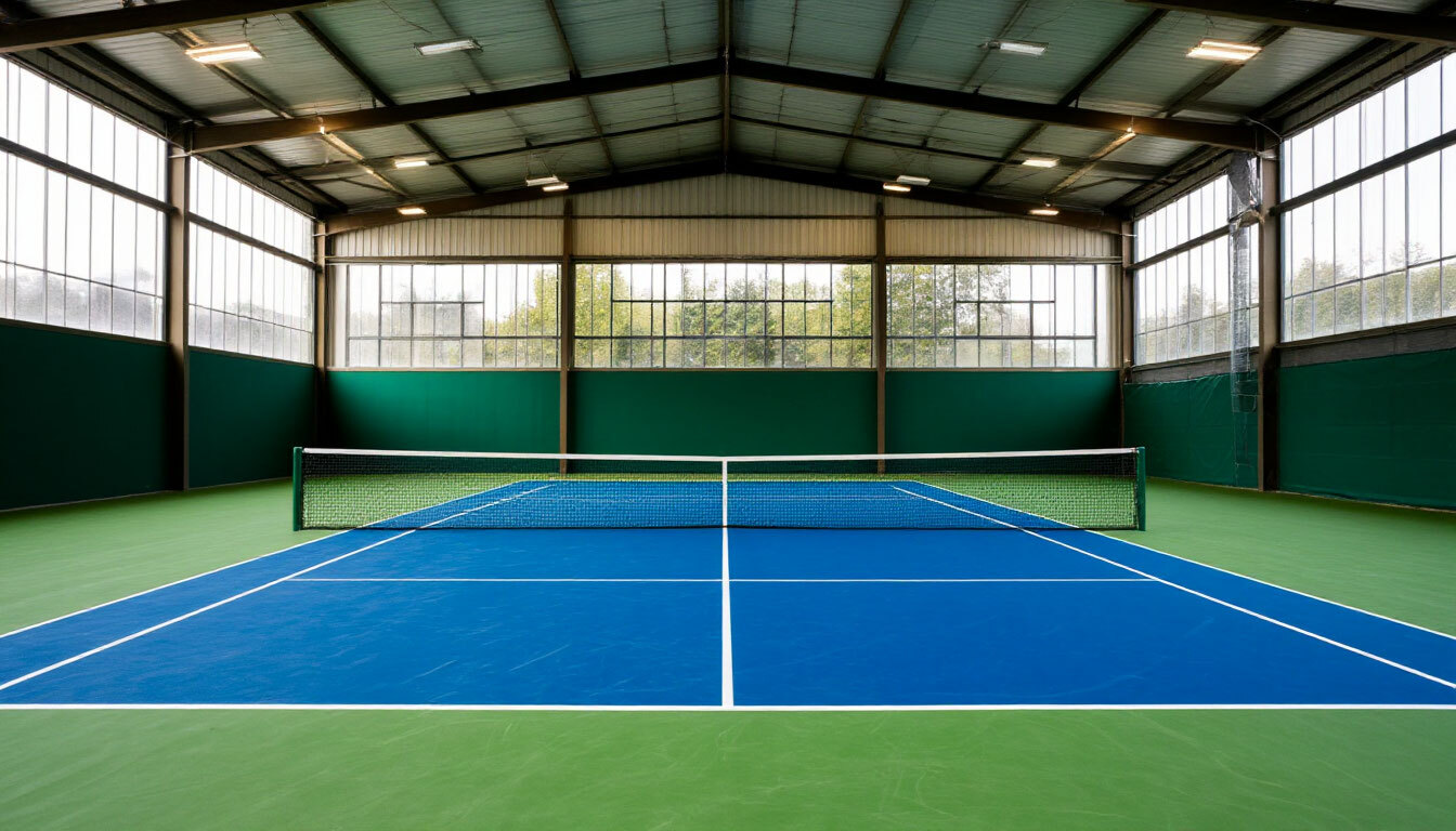 - Закрытые корты позволяют заниматься независимо от погодных условий.